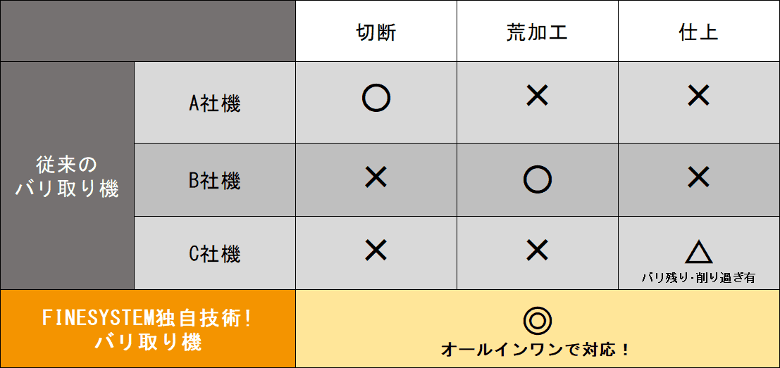 材質・サイズ・バリ種類を問わず“空振り・えぐり”ゼロのバリ取りを可能にしました。