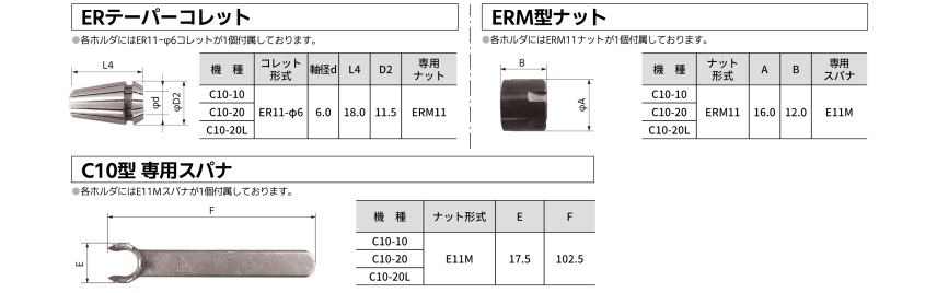 - コレット部の把握範囲は、φ0.5~φ7mm。 ※把握サイズに合ったコレットが必要です(別売)。